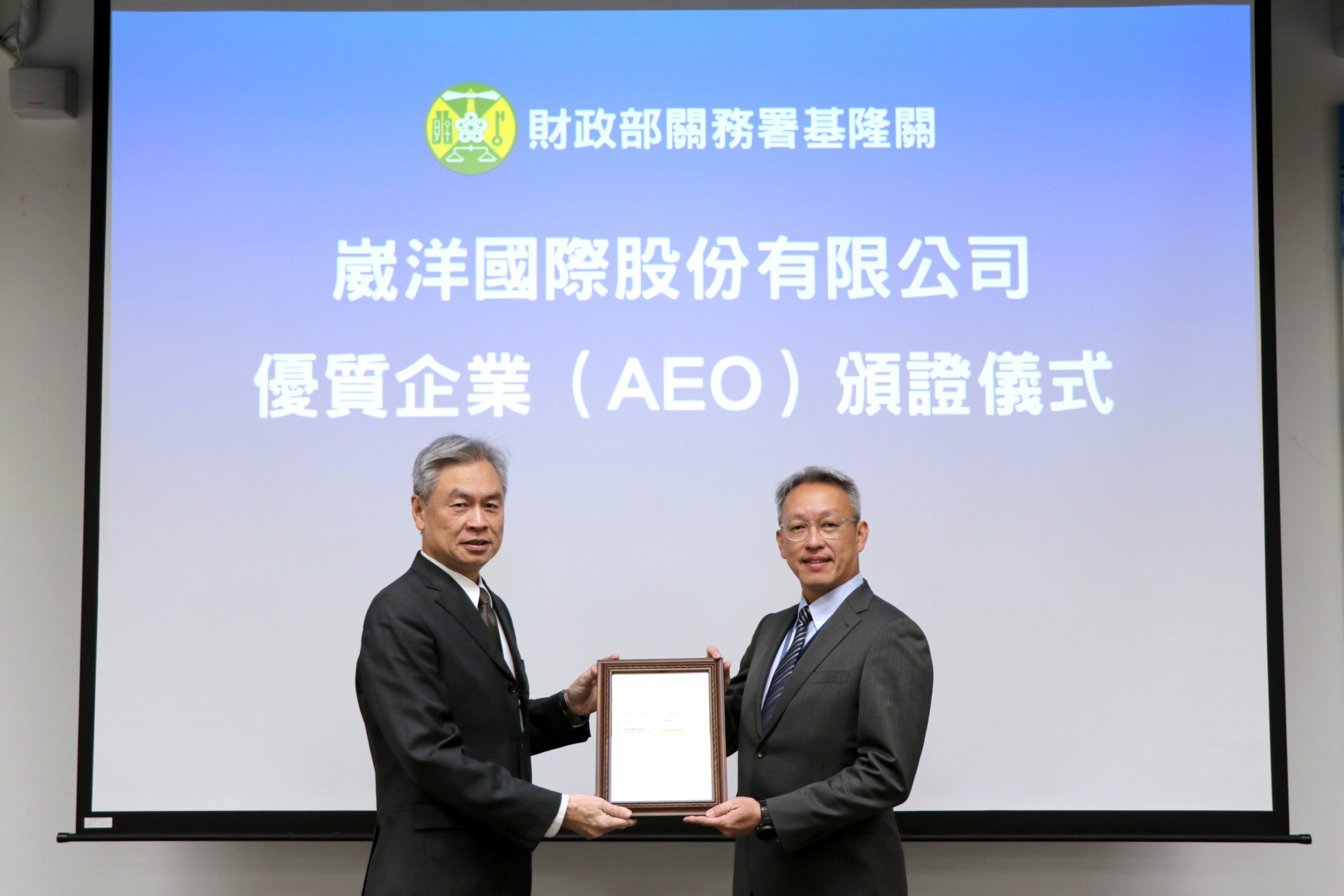 崴洋國際股份有限公司通過安全認證優質企業(AEO)認證;該公司總經理謝明均於本(113)年12月9日率AEO小組成員至基隆關領證,由該關關務長張世棟頒發證書並表達恭賀之意。該公司總經理謝明均對海關於驗證過程中提供專業建議與協助,使其順利通過AEO認證,表達誠摯感謝。
